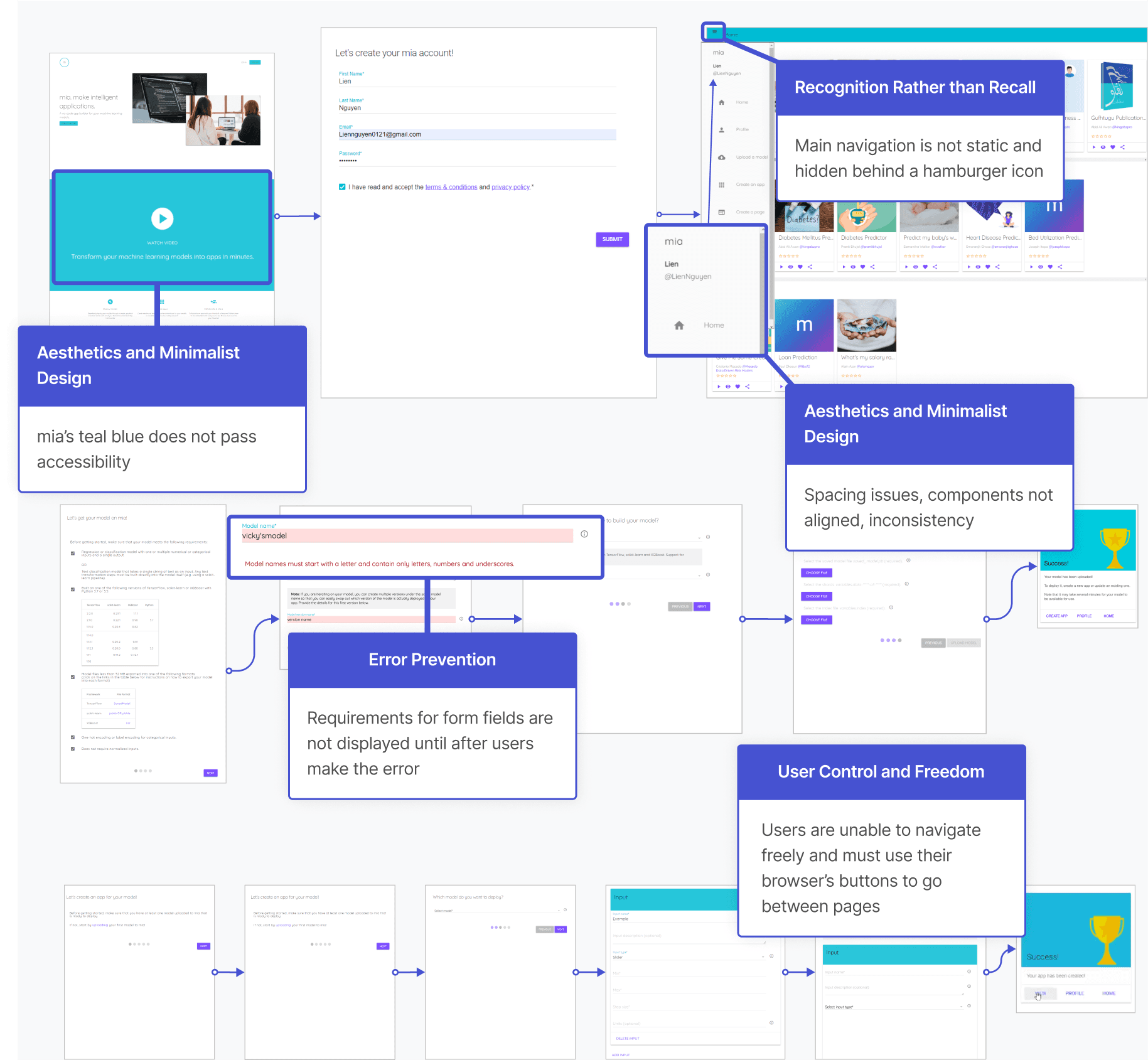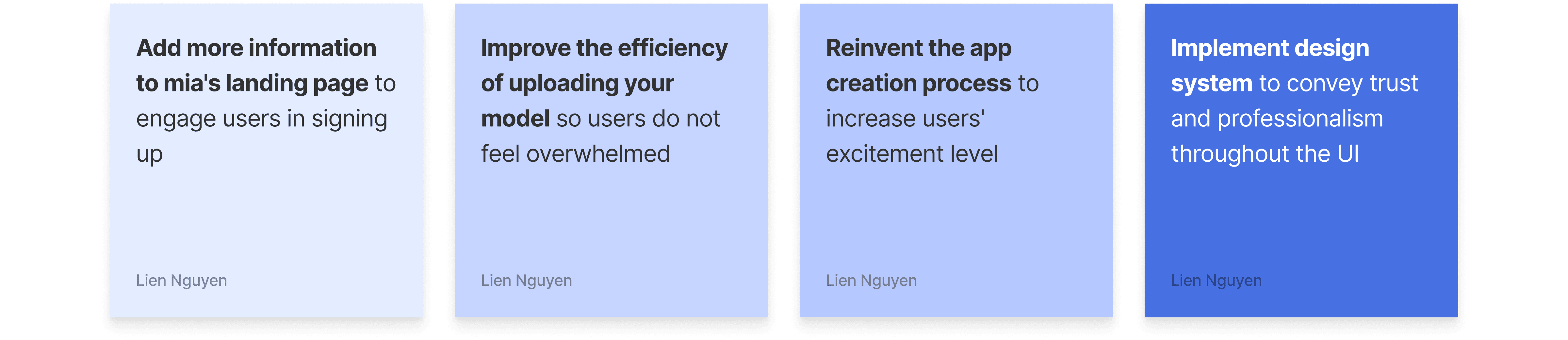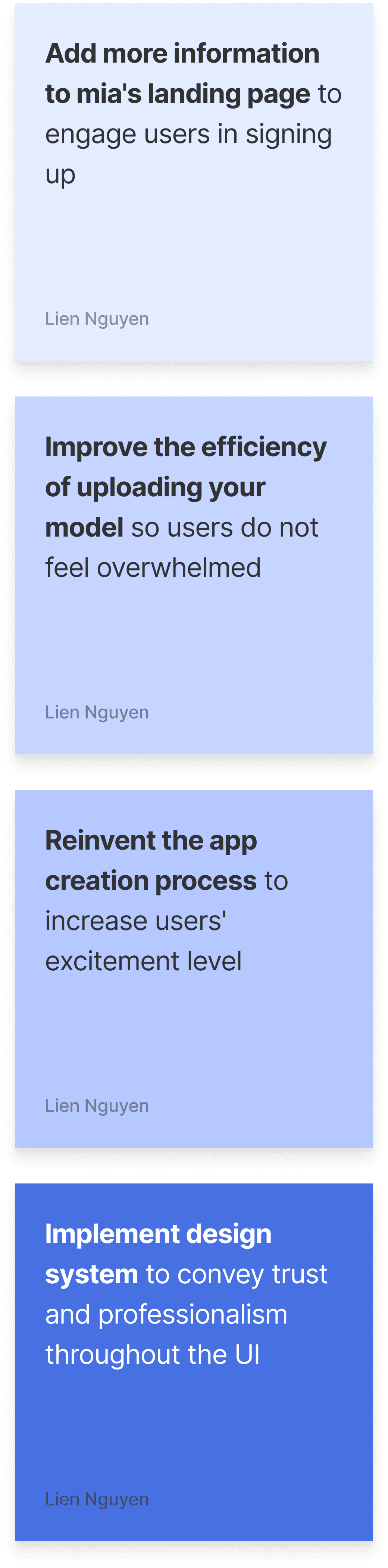 mia tasked our team to redesign their landing page and forms (uploading a model and app creation) so that mia can attract users and increase user engagement.