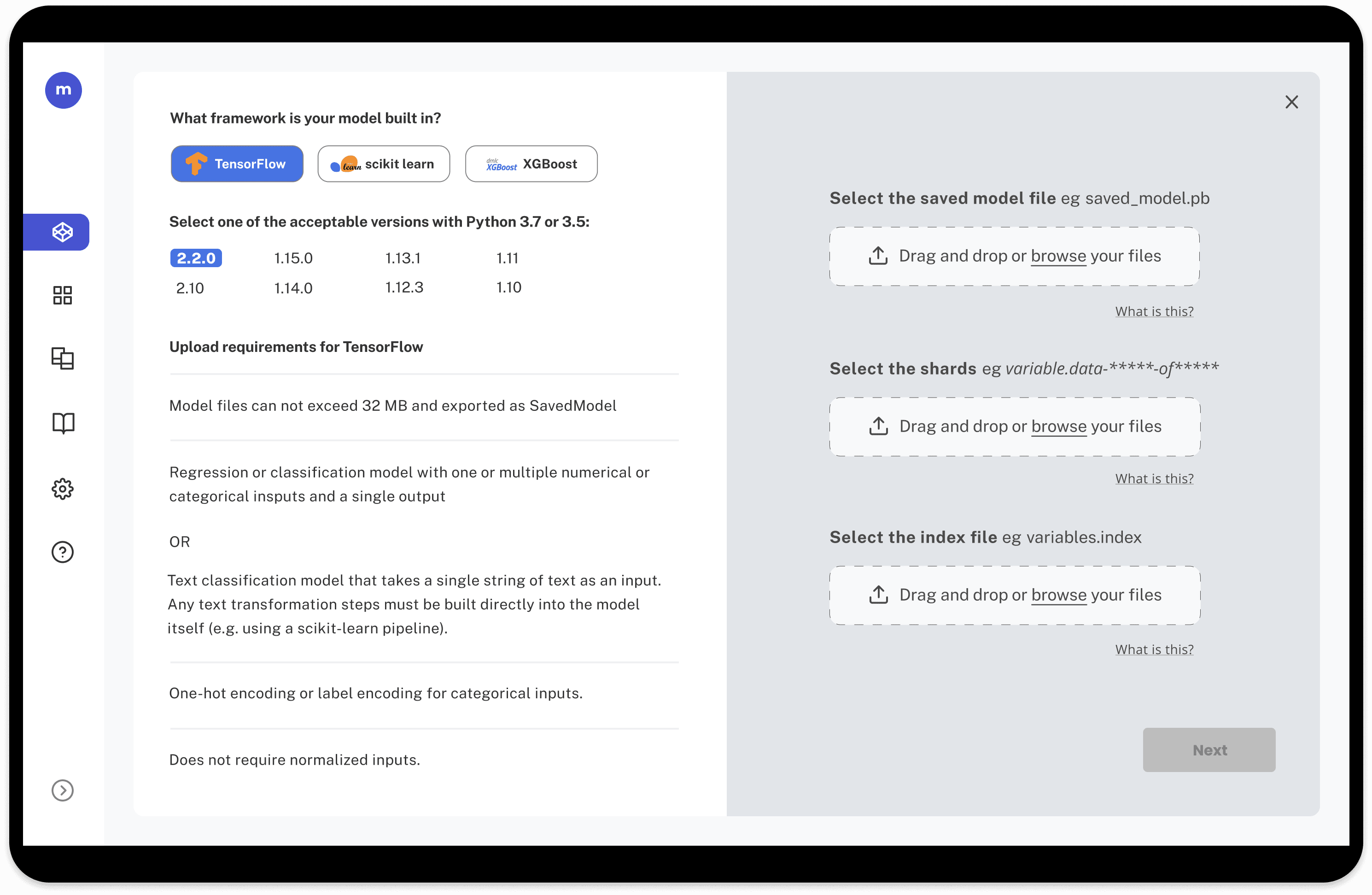 To make the form short and simple, we created a one-screen form where users could interact with the checklist of requirements, selecting their framework and version. The upload requirements would tailor to their selections. As a result, users would only read the information that pertains to their model.
